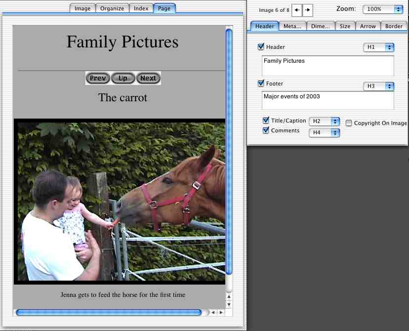This is the what your webpage will look like for the individual image pages. Again, you can adjust display dimensions, filesize, metadata, arrows and burn border.
